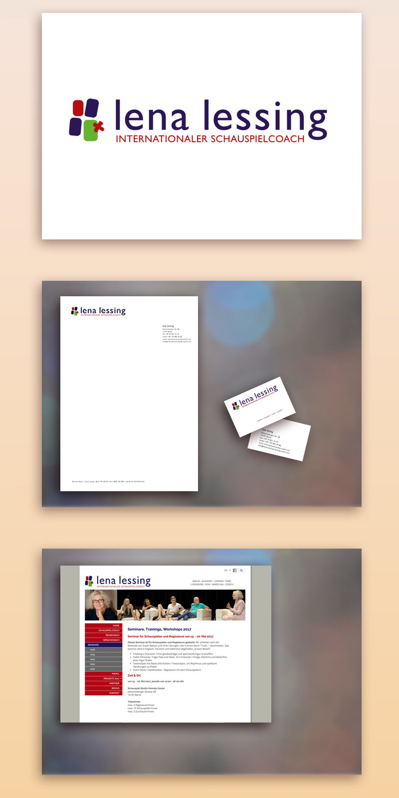 Für die internationale Schauspielcoachin Lena Lessing realisierte Relevant Webdesign ein ganzheitliches Corporate Design: vom individuellen Logo über Geschäftspapiere bis hin zur mehrsprachigen TYPO3 Website. Das Logo spiegelt ihre internationale Arbeit in Städten wie Rom, Budapest und Zürich wider und wurde harmonisch in das Webdesign integriert.