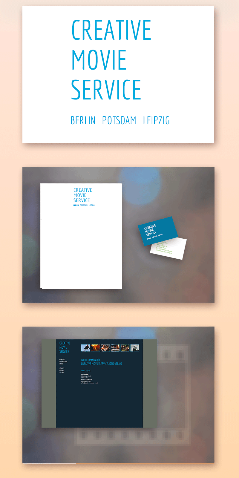 Für das Filmnetzwerk Creative Movie Service in Berlin, Potsdam und Leipzig entwickelte Relevant Webdesign ein durchgängiges visuelles Erscheinungsbild – von der Geschäftsausstattung bis zur fertigen Website.