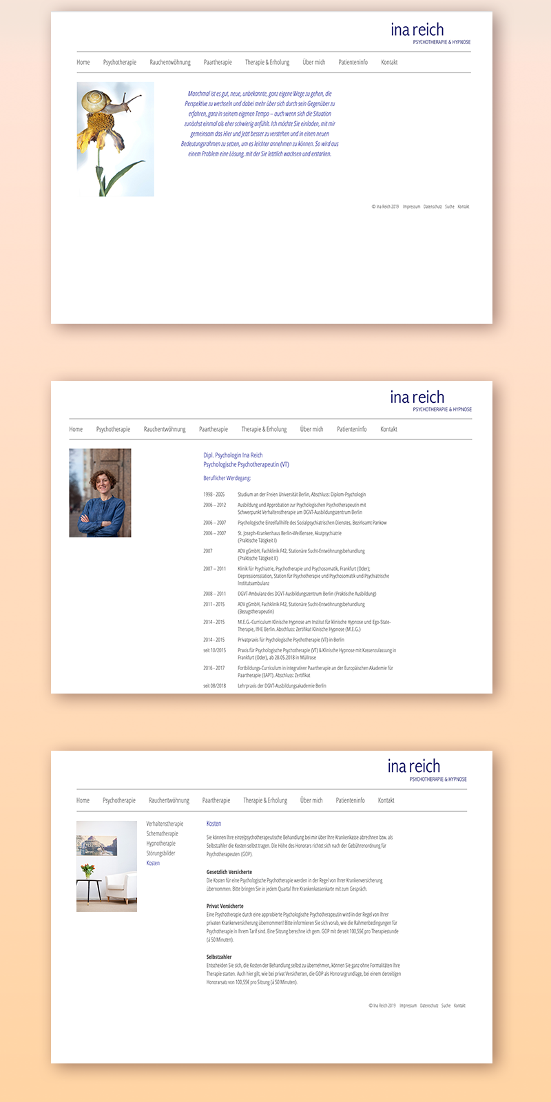 Für die Praxis der Psychotherapeutin Ina Reich entstand eine professionelle TYPO3-Praxishomepage mit Fokus auf Psychotherapie und Hypnose.